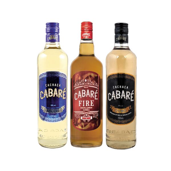 Combo - Cachaça Amburana Cabaré Garrafa 700ml + Cachaça Ouro Cabaré Garrafa 700ml + Cachaça Fire Cabaré Garrafa 1l